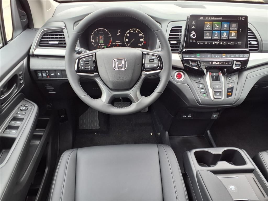 See what's behind you with the back up camera on the vehicle. This mini van's Forward Collision Warning system alerts the driver to potential front-end collisions, enhancing safety. This Honda Odyssey has auto-adjust speed for safe following. Never get into a cold vehicle again with the remote start feature on this unit. This Honda Odyssey offers Android Auto for seamless smartphone integration. This mini van keeps you comfortable with Auto Climate. Apple CarPlay: Seamless smartphone integration for it - stay connected and entertained on the go! The leather seats in this unit are a must for buyers looking for comfort, durability, and style. Bluetooth technology is built into this model, keeping your hands on the steering wheel and your focus on the road. The Honda Odyssey has a V6, 3.5L high output engine. It has an elegant black exterior finish. Enjoy the convenience of the power liftgate on this Honda Odyssey.