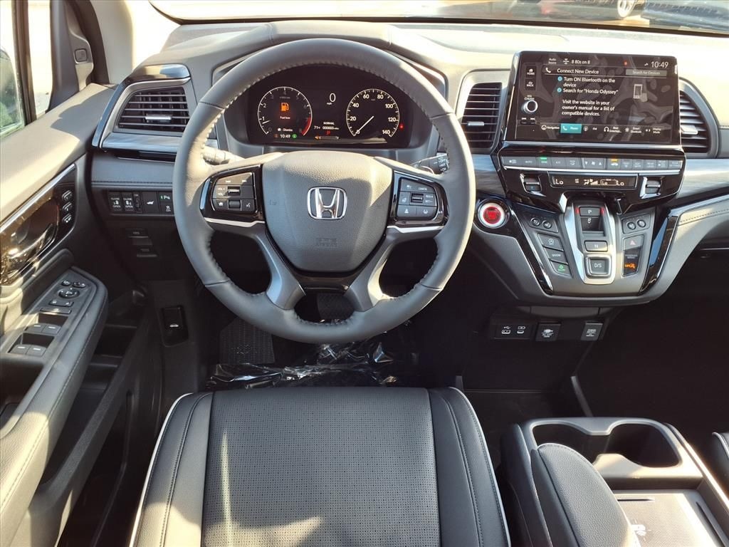 The installed navigation system will keep you on the right path. The Honda Odyssey's Forward Collision Warning system alerts the driver to potential front-end collisions, enhancing safety. The Honda Odyssey is pure luxury with a heated steering wheel. This mini van features a hands-free Bluetooth phone system. Protect the Honda Odyssey from unwanted accidents with a cutting edge backup camera system. This model offers Android Auto for seamless smartphone integration. The satellite radio system in this mini van gives you access to hundreds of nation-wide radio stations with a clear digital signal. Start the vehicle from inside with remote start. The Honda Odyssey has auto-adjust speed for safe following. The vehicle offers Apple CarPlay for seamless connectivity. The leather seats in this 2026 Honda Odyssey are a must for buyers looking for comfort, durability, and style. Maintaining a stable interior temperature in the Honda Odyssey is easy with the climate control system.
