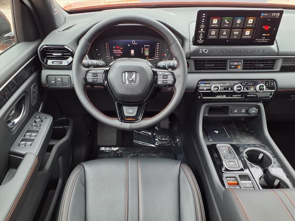 Protect this 2026 Honda Passport from unwanted accidents with a cutting edge backup camera system. Bluetooth technology is built into this model, keeping your hands on the steering wheel and your focus on the road. This vehicle comes equipped with Android Auto for seamless smartphone integration on the road. The leather seats in this unit are a must for buyers looking for comfort, durability, and style. The vehicle has automated speed control that adjusts to maintain a safe following distance, enhancing highway driving convenience. This model offers Apple CarPlay for seamless connectivity. Start this vehicle from inside with remote start. Keep your hands warm all winter with a heated steering wheel in the Honda Passport . The installed navigation system will keep you on the right path. This Honda Passport's Forward Collision Warning feature alerts drivers to potential front-end collisions. This unit features a high end BOSE stereo system. Set the temperature exactly where you are most comfortable in this vehicle. The fan speed and temperature will automatically adjust to maintain your preferred zone climate.