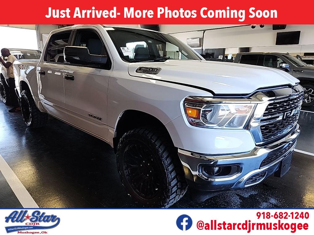 2023 Ram 1500 Big Horn â" 4WD, V8 5.7L, 26,935 Miles â" Best Price in Muskogee, OK This 2023 Ram 1500 Big Horn combines rugged capability with modern convenience. Powered by a V8 5.7L gasoline engine and equipped with four-wheel drive, this truck delivers strong towing performance and confident handling on- and off-road. With just 26,935 miles, this Ram offers low mileage for its model year, giving you years of dependable service ahead. Key features include a CARFAX Clean Report for peace of mind, Satellite Radio and XM Radio for entertainment on the road, Apple CarPlay for seamless smartphone integration, and a Back-Up Camera to simplify parking and enhance safety. The Big Horn trim provides a comfortable interior and practical tech options without unnecessary extras. Located in Muskogee, OK, this Ram 1500 is priced to move â" the best price in the area for a low-mileage 2023 V8 4WD pickup. Whether you need a capable work truck, weekend adventure vehicle, or everyday driver with serious presence, this Ram fits the bill. Contact us today to schedule a test drive or request the CARFAX report. Competitive pricing and low mileage make this 2023 Ram 1500 Big Horn a smart buy in Muskogee, Oklahoma.
